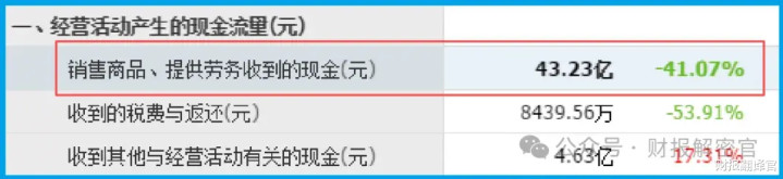 当调查转向现金流量表时,第一份“不在场证明”出现了。报告期内,公司销售商品收到的现金总额高达43.23亿元。