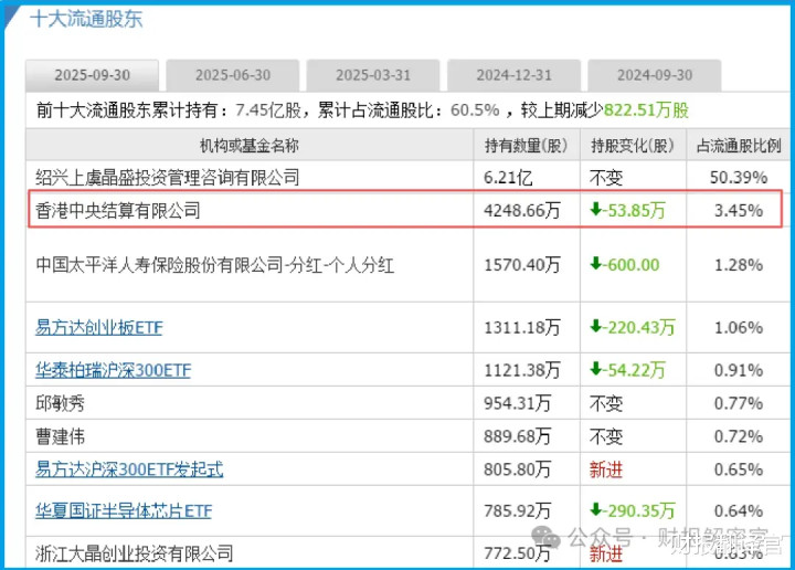 但就在同一份文件的股东名单里,一个名字稳如泰山——香港中央结算有限公司。